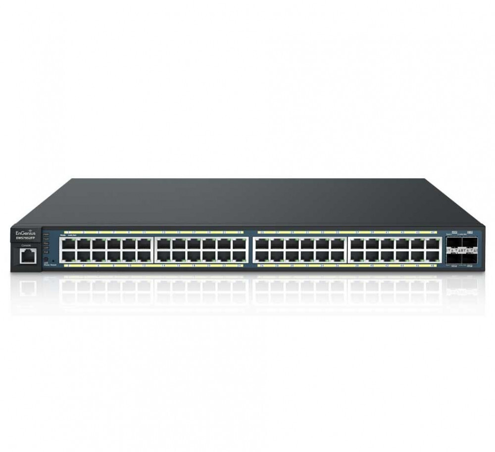 (48) 10/100/1000 Mbps Gigabit Ethernet PoE+ Ports; (4) SFP Ports